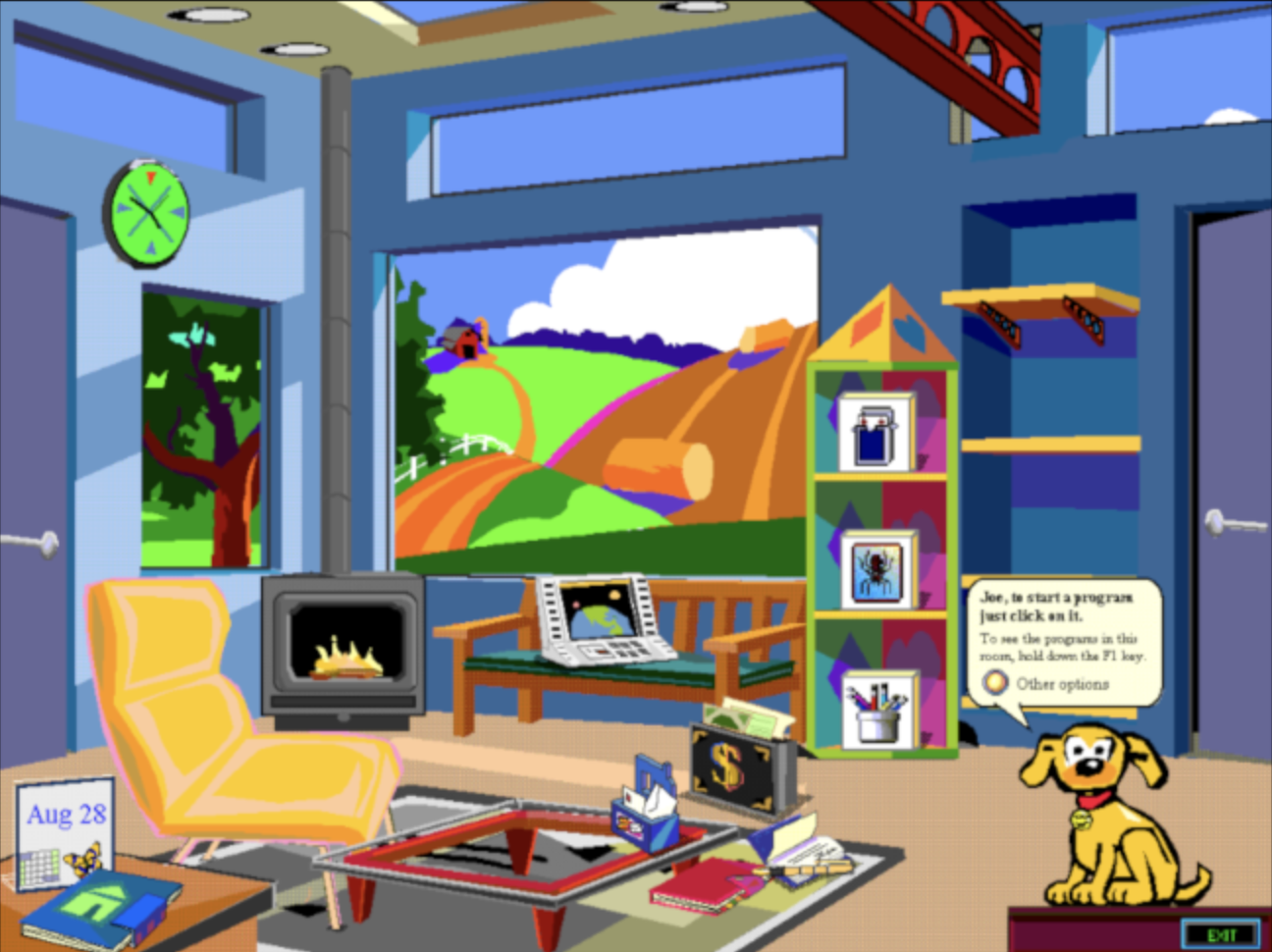 In 1995, Microsoft released an operating system called “Microsoft Bob” that was styled like a home interior and targeted towards new users. The design used the conceptual model of a house to navigate the computer’s files and software applications. On top of this, the user was guided by talking animals to complete tasks they might be interested in, such as clicking on papers on the desk to open a word processor (the animal part sounds odd at first, but makes more sense when you remember Clippy or think of Siri or Alexa today).